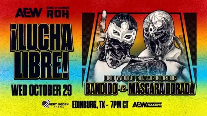 - Bandido (c) defendió el Campeonato Mundial de ROH contra Máscara Dorada, en el evento CMLL vs AEW & ROH.
