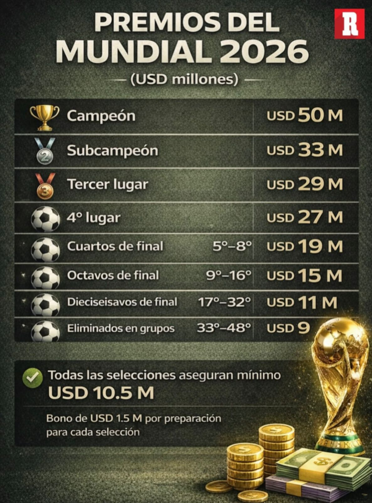 La publicación de los premios económicos para el Mundial confirma que la Copa del Mundo no solo es el mayor espectáculo deportivo, sino también un motor económico de alcance global.
