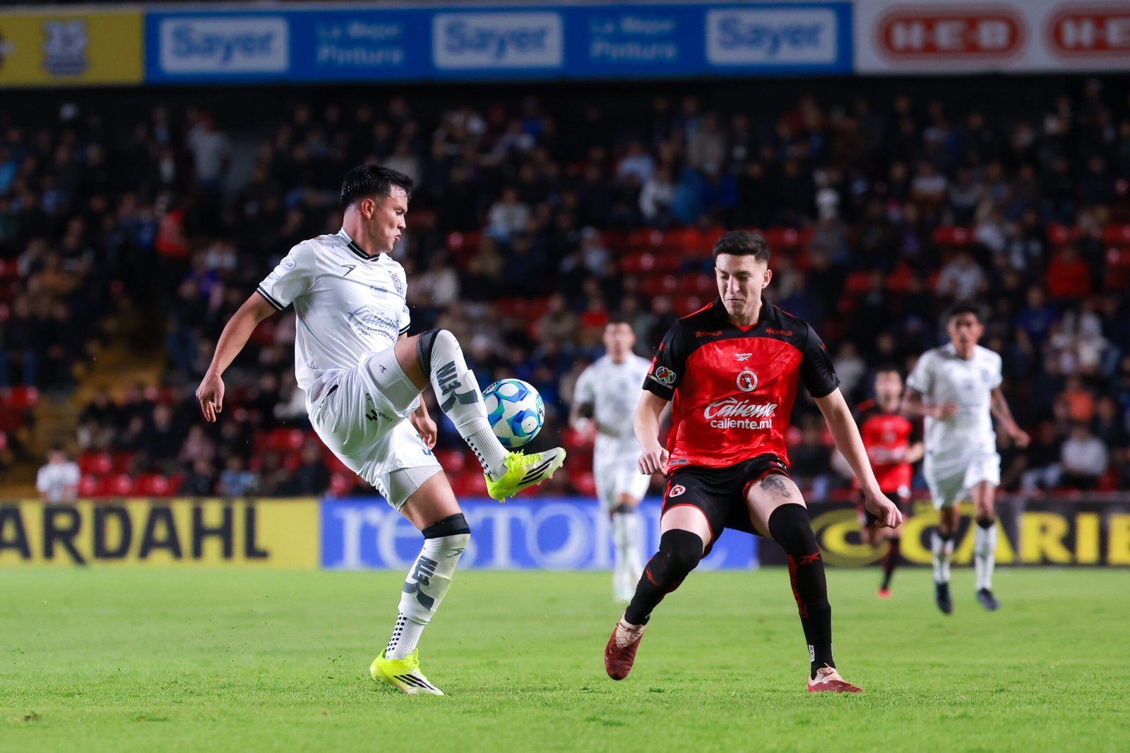 Durante la primera mitad, el encuentro fue trabado y con escasas opciones claras de gol. Ambos equipos apostaron por el orden defensivo y el juego corto, lo que derivó en pocas aproximaciones de peligro y un duelo intenso en el mediocampo. Las acciones más relevantes se dieron en disputas individuales, con Querétaro intentando generar desde la posesión y Xolos cerrando espacios para evitar profundidad.