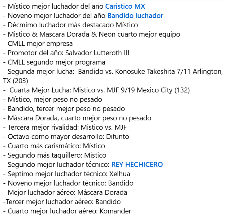 Wrestling Observer Newsletter (WON), uno de los medios especializados en lucha libre más influyentes del mundo. Después de una votación de los suscritos al newsletter, se han anunciado a los ganadores de la edición del año 2025, donde la bandera mexicana resuena en todo lo alto.